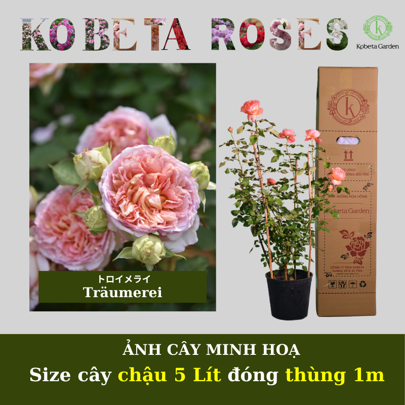 • Cây hoa hồng Kobeta thừa hưởng vẻ đẹp cổ điển, với những cánh hoa lớn, màu sắc đa dạng và hương thơm tinh tế từ hãng David Austin.