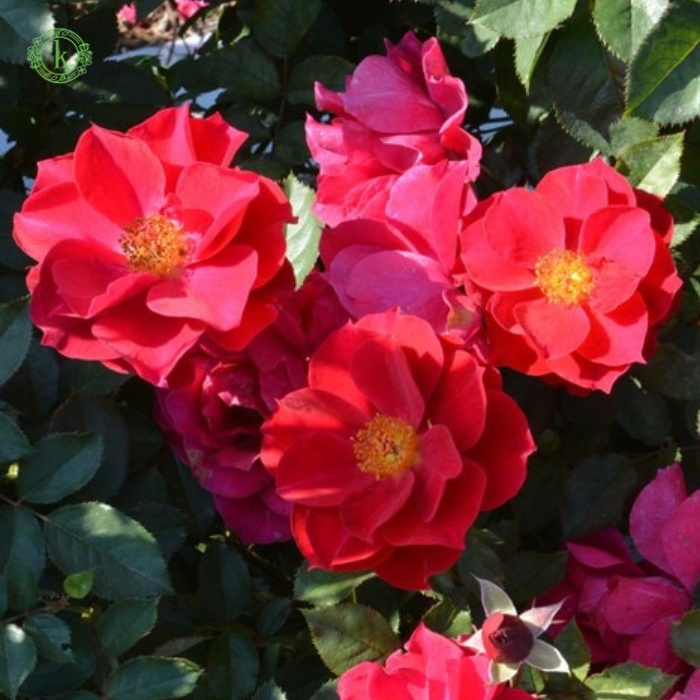 Màu đỏ đậm, hoa cánh tròn, bán kép, hoa cụm trung bình. Hương thơm nhẹ nhàng của trà. Trên những cành khỏe mạnh, hoa có thể nở thành cụm lớn. Dù số lượng cánh hoa ít, nhưng hoa vẫn giữ được vẻ đẹp riêng. Hoa giữ lâu, thích hợp để làm hoa cắt cành, và khi hoa tàn, cánh hoa sẽ tự nhiên rụng.
